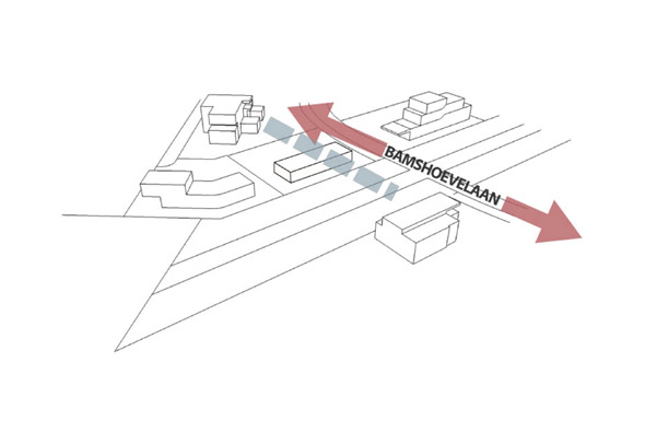 Stedenbouwkundig is de Museumlaan vormgegeven als een muur waarachter gewoond wordt. De woningen zijn gesloten richting de Museumlaan, maar juist open naar de achtertuin. In de woning is deze ontwerpvisie overgenomen. Twee verschillende volumes volgen de rooilijnen en begrenzen het kavel.